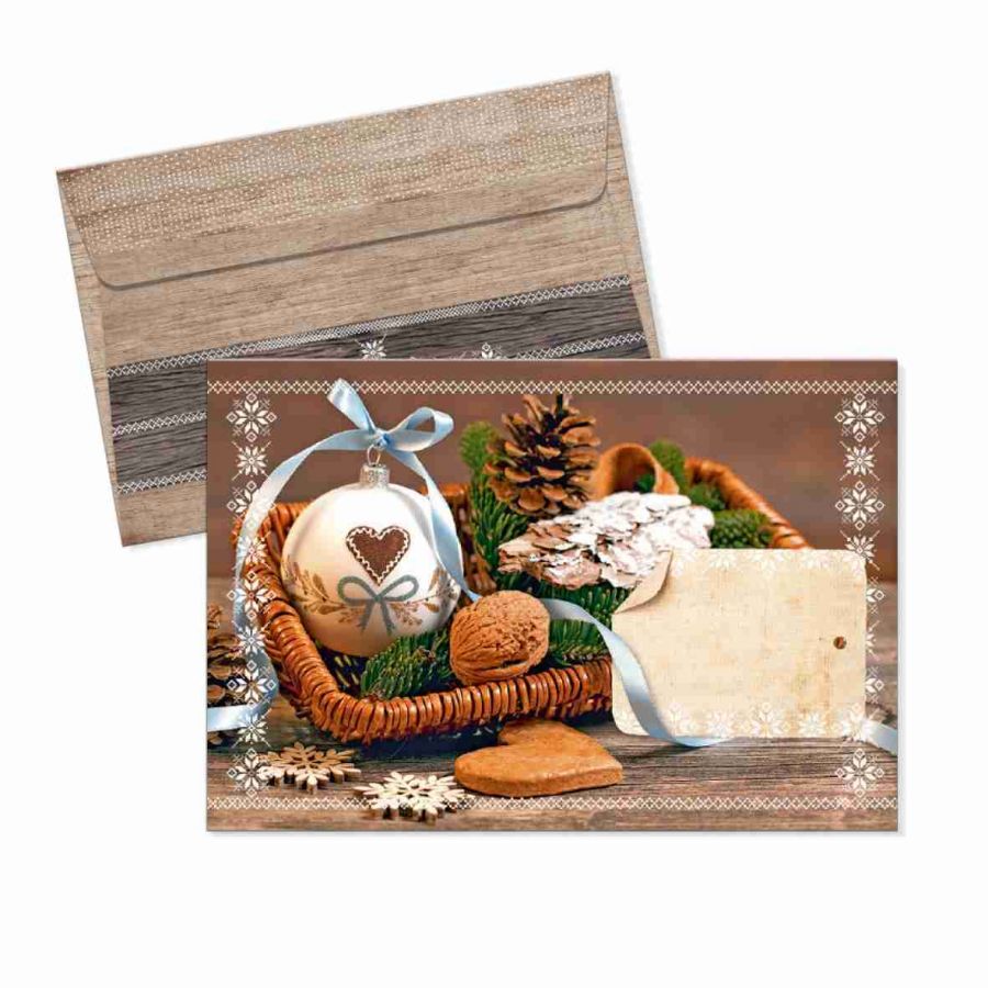 Bílá obálka rozměru B6 s potiskem vánoční tematiky, se samolepícím uzavíráním. Vhodná pro balení různých dárkových poukazů i peněz.