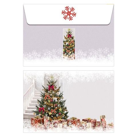 Bílá obálka rozměru B6 s potiskem vánoční tematiky, se samolepícím uzavíráním. Vhodná pro balení různých dárkových poukazů i peněz.