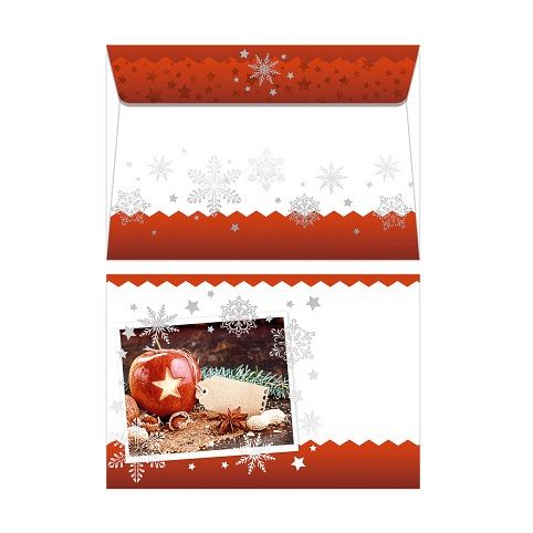 Bílá obálka rozměru B6 s potiskem vánoční tematiky, se samolepícím uzavíráním. Vhodná pro balení různých dárkových poukazů i peněz.