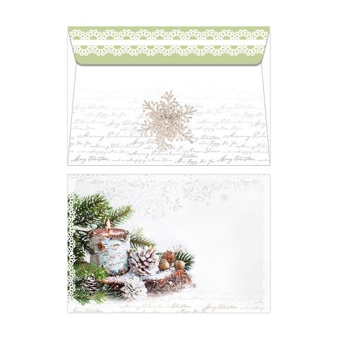 Bílá obálka rozměru B6 s potiskem vánoční tematiky, se samolepícím uzavíráním. Vhodná pro balení různých dárkových poukazů i peněz.