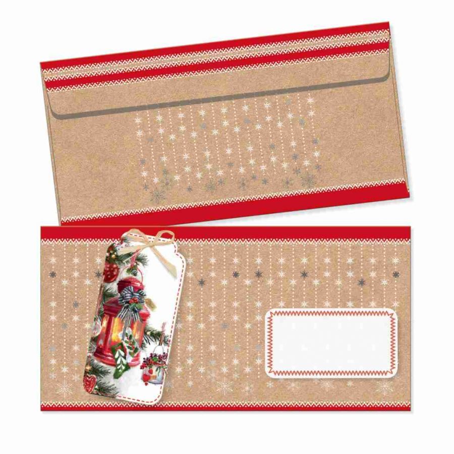 Bílá obálka rozměru DL s potiskem vánoční tematiky, samolepicí. Vhodná pro balení různých dárkových poukazů i peněz.