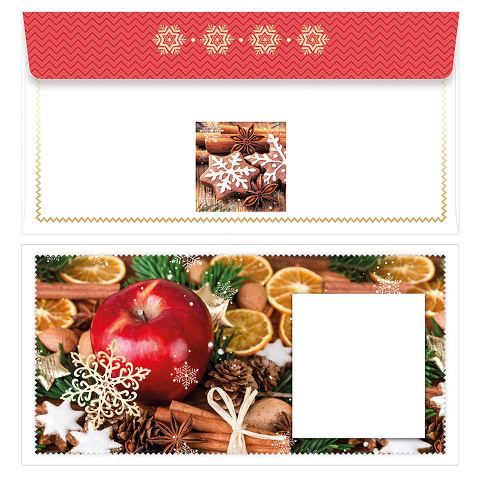 Bílá obálka rozměru DL s potiskem vánoční tematiky, samolepicí. Vhodná pro balení různých dárkových poukazů i peněz.
