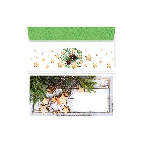 Bílá obálka rozměru DL s potiskem vánoční tematiky, samolepicí. Vhodná pro balení různých dárkových poukazů i peněz.