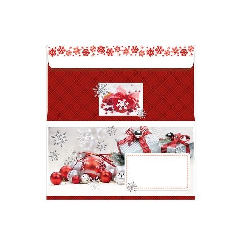 Bílá obálka rozměru DL s potiskem vánoční tematiky, samolepicí. Vhodná pro balení různých dárkových poukazů i peněz.