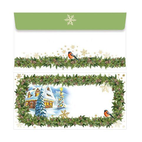 Bílá obálka rozměru DL s potiskem vánoční tematiky, samolepicí. Vhodná pro balení různých dárkových poukazů i peněz.
