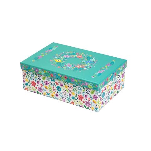 Nádherní papírová krabice ve tvaru obdélníka z dílny ARGUSu - květinový motiv.. Vhodná nejen k zabalení dárků, ale také jako dekorace do bytu a odkládací prostor pro různé drobnosti v poličkách vašeho domova.
