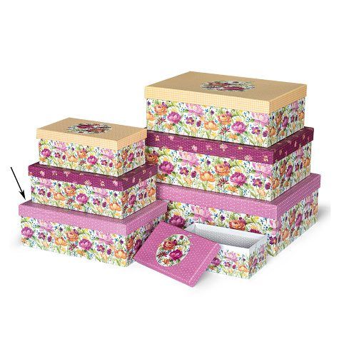 Nádherní papírová krabice ve tvaru obdélníka z dílny ARGUSu - květinový motiv.. Vhodná nejen k zabalení dárků, ale také jako dekorace do bytu a odkládací prostor pro různé drobnosti v poličkách vašeho domova.