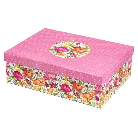 Nádherní papírová krabice ve tvaru obdélníka z dílny ARGUSu - květinový motiv.. Vhodná nejen k zabalení dárků, ale také jako dekorace do bytu a odkládací prostor pro různé drobnosti v poličkách vašeho domova.