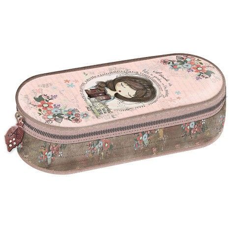 Praktický a prostorný oválný penál z dílny španělské návrhářky s motivem děvčátka Anekke. Je vybaven vnitřní kapsou na zip a rozvrhem hodin, který je vložen pod fólií na klopě. Ta odděluje horní část penálu a má na sobě gumičky pro uchycení potřeb na psaní. Každý zip je ukončen ozdobou s designem Anekke.