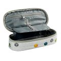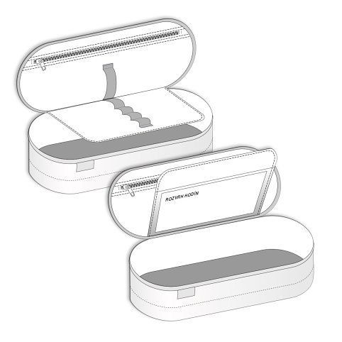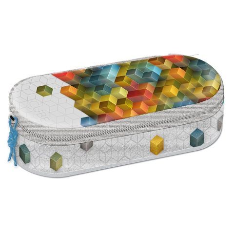 Praktický a prostorný oválný penál. Je vybaven vnitřní kapsou na zip a rozvrhem hodin, který je vložen pod fólií na klopě. Ta odděluje horní část penálu a má na sobě gumičky pro uchycení potřeb na psaní. Každý zip je ukončen ozdobou.