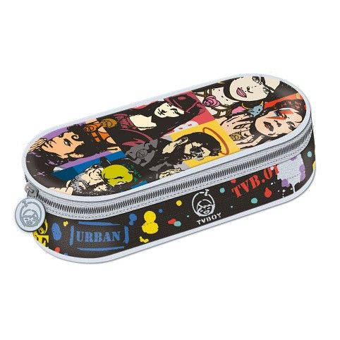 Praktický a prostorný oválný penál. Je vybaven vnitřní kapsou na zip a rozvrhem hodin, který je vložen pod fólií na klopě. Ta odděluje horní část penálu a má na sobě gumičky pro uchycení potřeb na psaní. Každý zip je ukončen ozdobou.