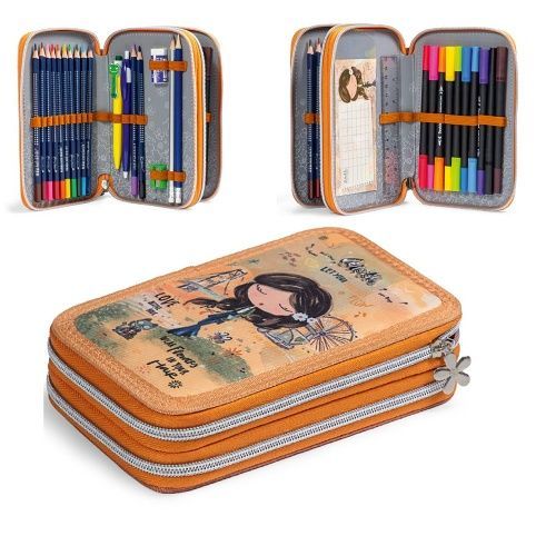 Dvoupatrový školní penál s motivem oblíbené holčičky Anekke z dílny španělské návrhářky. Penál nabízí dva úložné prostory pro úschovu psacích potřeb a dalších školních pomůcek. Uzavírání obou pater je pomocí zipu s poutky pro lepší manipulaci v designu Anekke.