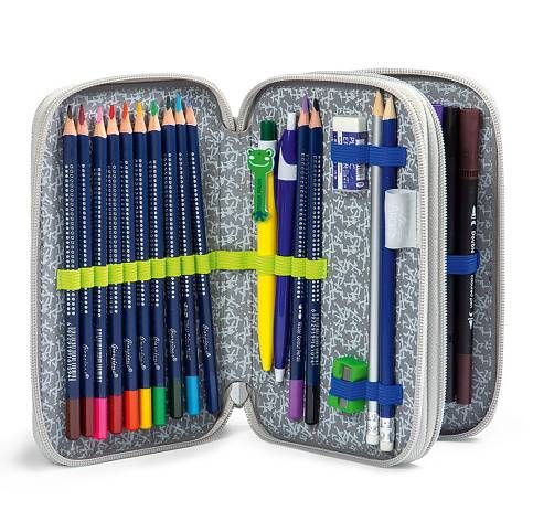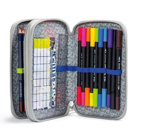 Dvoupatrový školní penál s motivem GOAL TIME. Penál nabízí dva úložné prostory pro úschovu psacích potřeb a dalších školních pomůcek. Uzavírání obou pater je pomocí zipu s poutky pro lepší manipulaci.