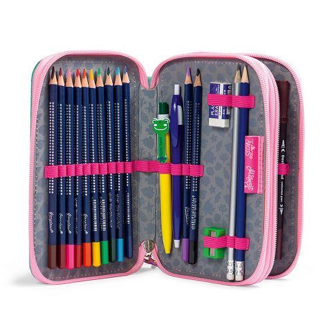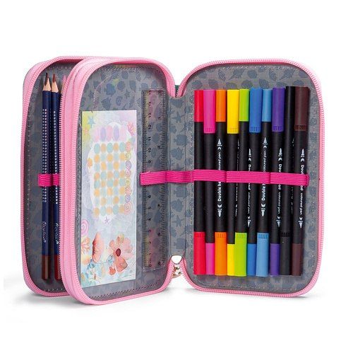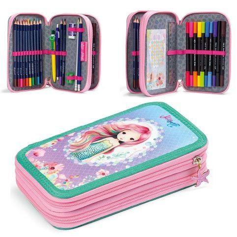 Dvoupatrový školní penál s motivem Mermaid. Penál nabízí dva úložné prostory pro úschovu psacích potřeb a dalších školních pomůcek. Uzavírání obou pater je pomocí zipu s poutky pro lepší manipulaci.