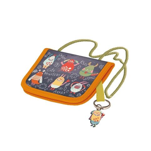 Dětská školní peněženka Cute Monsters na krk nebo do školní tašky. Má vnitřní kapsu na zip, úchyt na klíček a více přihrádek. Peněženka je uzavřená suchý zipem, který brání jejímu otevření.