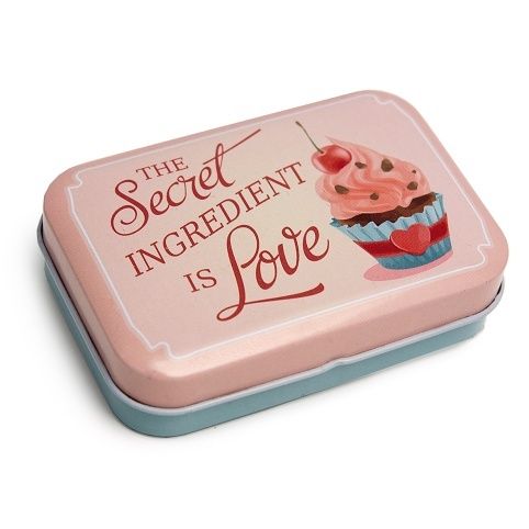Plechová krabička s odklápěcím víkem na pant a potiskem. Vhodná pro různé drobnosti v domácnosti ale i jako malý dárek.
