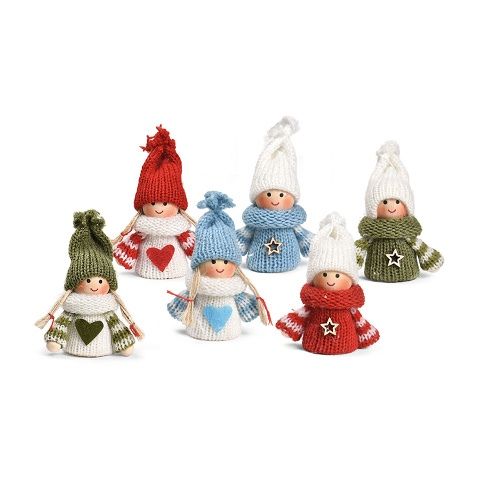 Textilní figurky v plastovém boxíku. Cena na eshopu je za 1 ks figurky* figurky jsou dřevěné, kombinované s pletenou textilií, pletenou čepičkou a šálou* každá figurka má šňůrku na zavěšení* vhodné jako dárek i vánoční ozdoba na stromeček a také jako vánoční dekorace do aranžmá* cena na eshopu je za 1 ks figurky* balení obsahuje 12 ks figurek