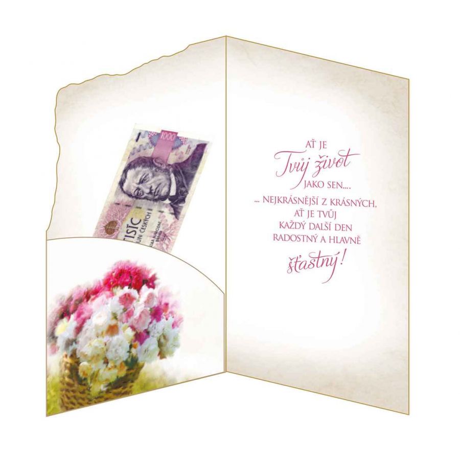 Přání pro ženu k narozeninám nebo svátku s textem a záložkou na peníze uvnitř přání. Součástí blahopřání je barevně sladěna obálka. Originální technologie zpracování přáníčka od společnosti ARGUS - "Na detailu záleží!"