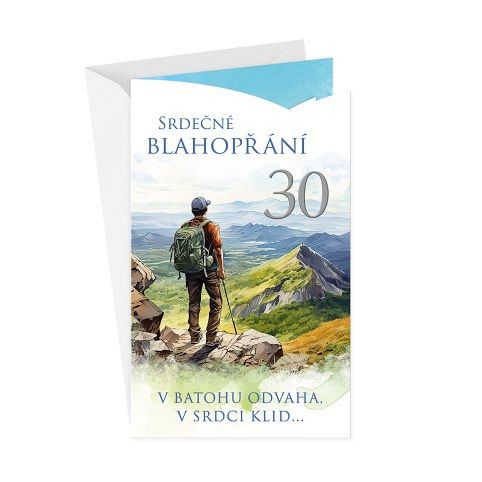 Narozeninové přání ke 30.narozeninám pro muže s textem uvnitř přání.* součástí blahopřání je barevně sladěna obálka* originální technologie zpracování přáníčka od společnosti ARGUS - "Na detailu záleží!"