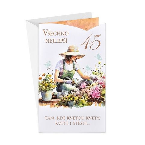 Narozeninové přání ke 45.narozeninám s textem uvnitř přání.* součástí blahopřání je barevně sladěna obálka* originální technologie zpracování přáníčka od společnosti ARGUS - "Na detailu záleží!"