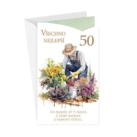 Narozeninové přání ke 50.narozeninám pro muže s textem uvnitř přání.* součástí blahopřání je barevně sladěna obálka* originální technologie zpracování přáníčka od společnosti ARGUS - "Na detailu záleží!"