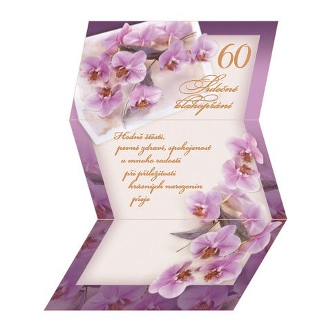 Přání k 60. narozeninám - listina s textom. Součástí balení je i barevně sladěná obálka. Originální technologie zpracování přáníčka od společnosti ARGUS - "Na detailu záleží!"