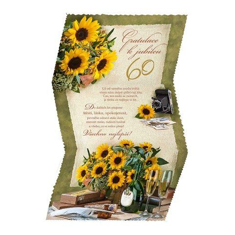 Přání k 60. narozeninám - listina s textom. Součástí balení je i barevně sladěná obálka. Originální technologie zpracování přáníčka od společnosti ARGUS - "Na detailu záleží!"