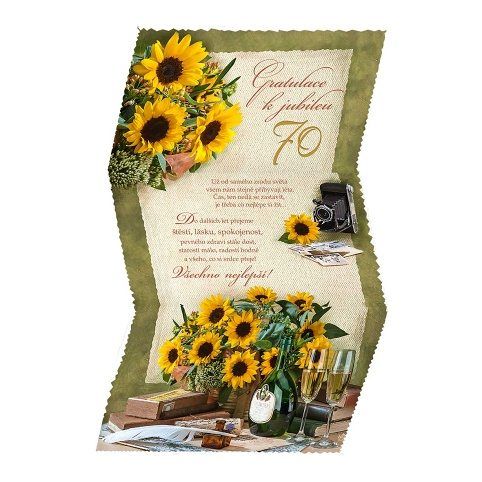 Přání k 70. narozeninám - listina s textom. Součástí balení je i barevně sladěná obálka. Originální technologie zpracování přáníčka od společnosti ARGUS - "Na detailu záleží!"