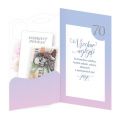 Přání k 70. narozeninám s textem a záložkou na peníze uvnitř blahopřání. Součástí blahopřání je barevně sladěna obálka. Originální technologie zpracování přáníčka od společnosti ARGUS - "Na detailu záleží!"
