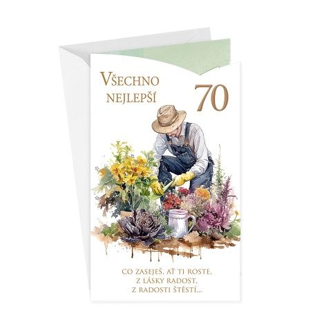 Narozeninové přání ke 70.narozeninám pro muže s textem uvnitř přání.* součástí blahopřání je barevně sladěna obálka* originální technologie zpracování přáníčka od společnosti ARGUS - "Na detailu záleží!"