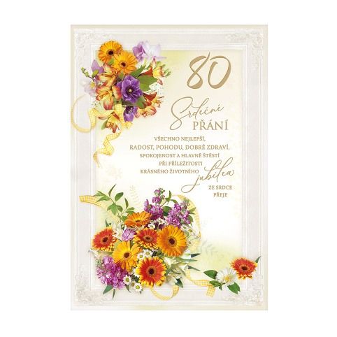 Přání k 80. narozeninám - listina. S textem uvnitř přání. Součástí balení je i barevně sladěná obálka. Originální technologie zpracování přáníčka od společnosti ARGUS - "Na detailu záleží!"