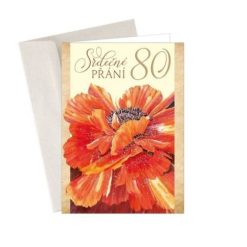 Blahopřání k 80. narozeninám vhodné pro ženu s textem uvnitř. Součástí přání je také barevně sladěná obálka. Originální technologie zpracování od společnosti ARGUS - "Na detailu záleží!"