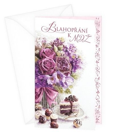 Přání k Mezinárodnímu dni žen s textem uvnitř přání. Součástí blahopřání je barevně sladěna obálka. Originální technologie zpracování přáníčka od společnosti ARGUS - "Na detailu záleží!"