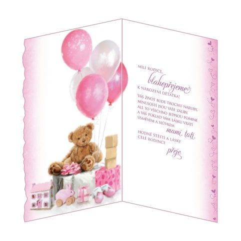 Blahopřání k narození dítěte s textem uvnitř. Součástí přání je barevně sladěna obálka. Originální technologie zpracování od společnosti ARGUS - "Na detaile záleží!"