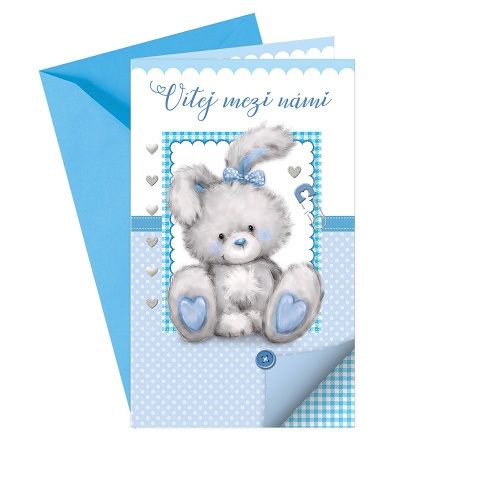 Blahopřání k narození dítěte s textem uvnitř. Součástí přání je barevně sladěna obálka. Originální technologie zpracování od společnosti ARGUS - "Na detaile záleží!"