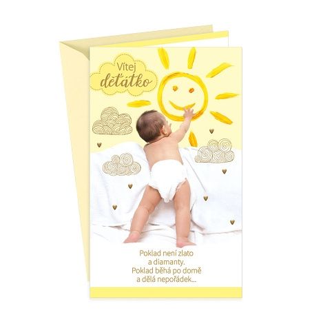 Blahopřání k narození dítěte s textem uvnitř. Součástí přání je barevně sladěna obálka. Originální technologie zpracování od společnosti ARGUS - "Na detaile záleží!"