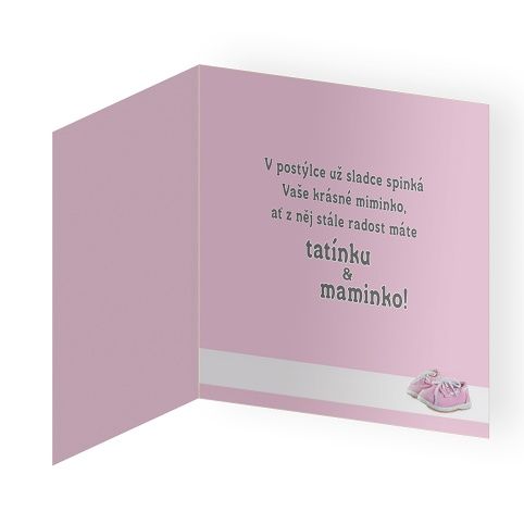 Blahopřání k narození dítěte s textem uvnitř. Součástí přání je barevně sladěna obálka. Originální technologie zpracování od společnosti ARGUS - "Na detaile záleží!"