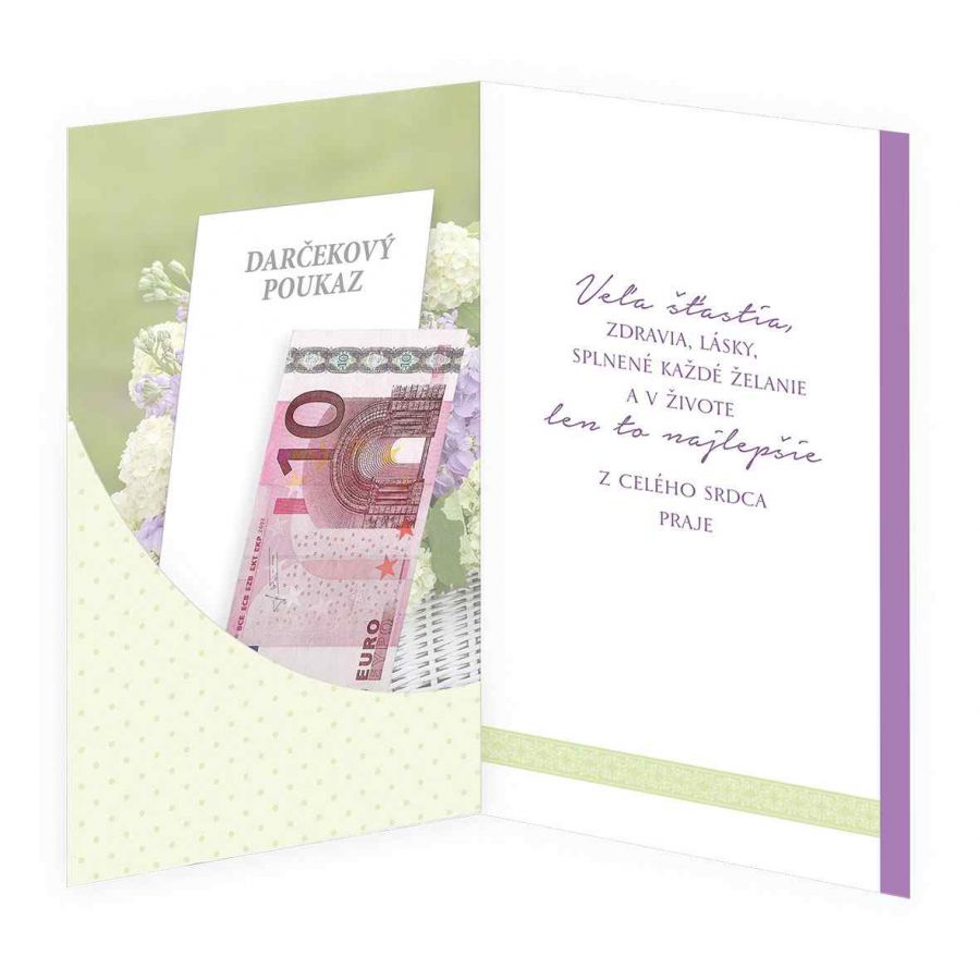 Narozeninové přání s textem a záložkou na peníze uvnitř přání. Součástí blahopřání je barevně sladěna obálka. Originální technologie zpracování přáníčka od společnosti ARGUS - "Na detailu záleží!"
