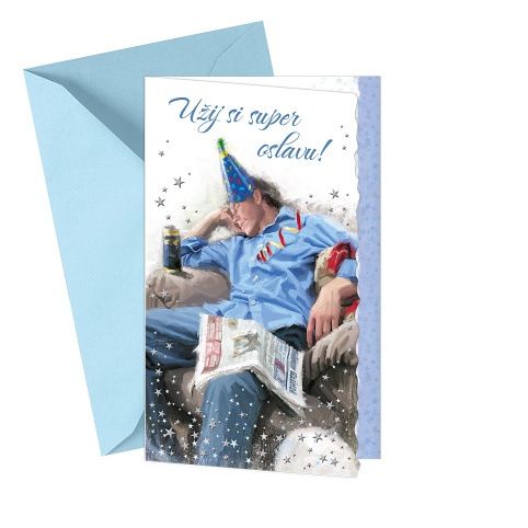 Narozeninové přání pro muže s textem uvnitř. Součástí blahopřání je barevně sladěna obálka. Originální technologie zpracování přáníčka od společnosti ARGUS - "Na detailu záleží!"
