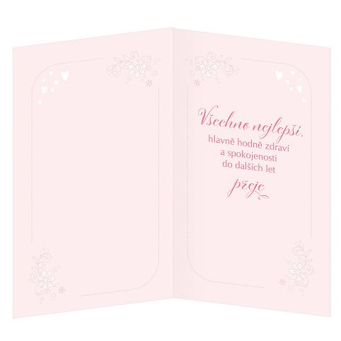 Přání k narozeninám s textem uvnitř přání. Součástí blahopřání je barevně sladěna obálka. Originální technologie zpracování přáníčka od společnosti ARGUS - "Na detailu záleží!"
