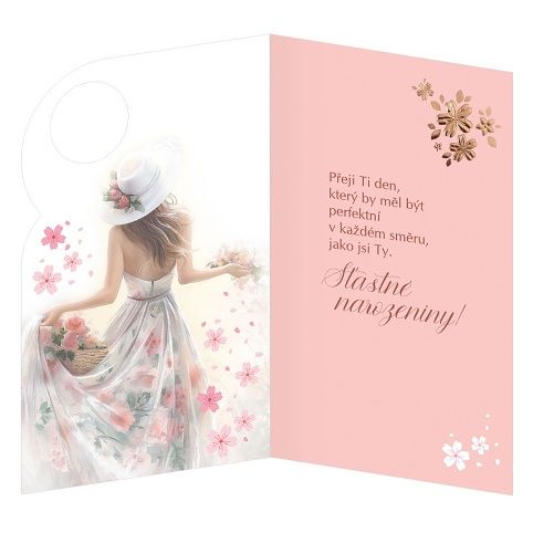 Přání k narozeninám s textem uvnitř přání. Součástí blahopřání je barevně sladěna obálka. Originální technologie zpracování přáníčka od společnosti ARGUS - "Na detailu záleží!"