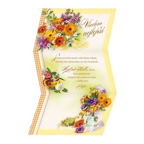 Přání k narozeninám - listina. S textem uvnitř přání. Součástí balení je i barevně sladěná obálka. Originální technologie zpracování přáníčka od společnosti ARGUS - "Na detailu záleží!"