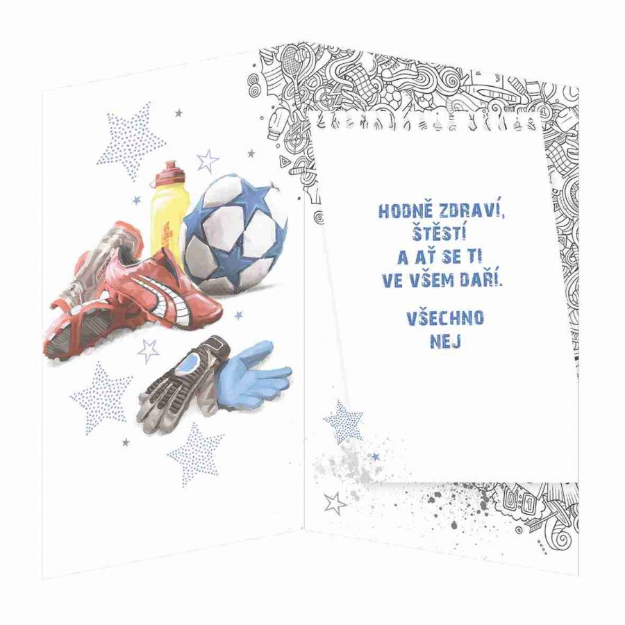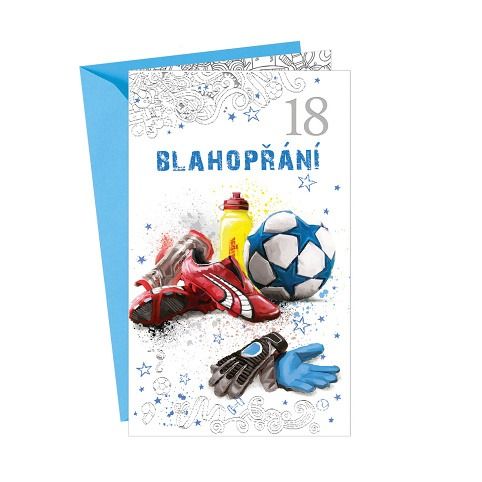 Přání k 18. narozeninám pro fotbalistu s textem uvnitř. Součástí blahopřání je barevně sladěna obálka. Originální technologie zpracování přáníčka od společnosti ARGUS - "Na detailu záleží!"