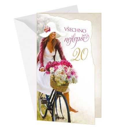 Přání k 20. narozeninám s textem a záložkou na peníze uvnitř přání. Součástí blahopřání je barevně sladěna obálka. Originální technologie zpracování přáníčka od společnosti ARGUS - "Na detailu záleží!"