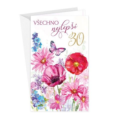 Přání k 30. narozeninám s textem a záložkou na peníze uvnitř přání. Součástí blahopřání je barevně sladěna obálka. Originální technologie zpracování přáníčka od společnosti ARGUS - "Na detailu záleží!"
