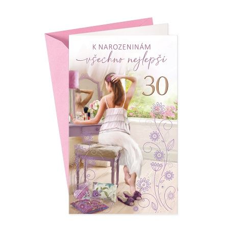 Přání k 30. narozeninám pro ženu.Text uvnitř přání. Součástí blahopřání je také barevně sladěná obálka. Originální technologie zpracování přáníčka od společnosti ARGUS - "Na detailu záleží!"