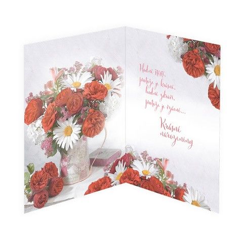 Blahopřání k narozeninám vhodné pro ženu s textem uvnitř. 3D efekt umocňuje dojem prostoru. Součástí přání je také barevně sladěná obálka. Originální technologie zpracování od společnosti ARGUS - "Na detailu záleží!"