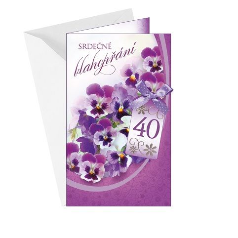 Přání k 40. narozeninám s lepeným komponentem - mašlička. Součástí blahopřání je barevně sladěna obálka a inspirační texty, ze kterých můžete použít to, které se vám nejvíce líbí. Originální technologie zpracování přáníčka od společnosti ARGUS - "Na detailu záleží!"