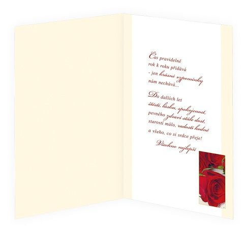 Přání k 40. narozeninám s textem uvnitř. Součástí blahopřání je barevně sladěna obálka. Originální technologie zpracování přáníčka od společnosti ARGUS - "Na detailu záleží!"