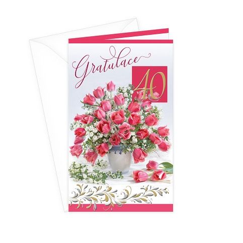 Přání k 40. narozeninám s textem uvnitř přání. Součástí blahopřání je barevně sladěna obálka. Originální technologie zpracování přáníčka od společnosti ARGUS - "Na detailu záleží!"